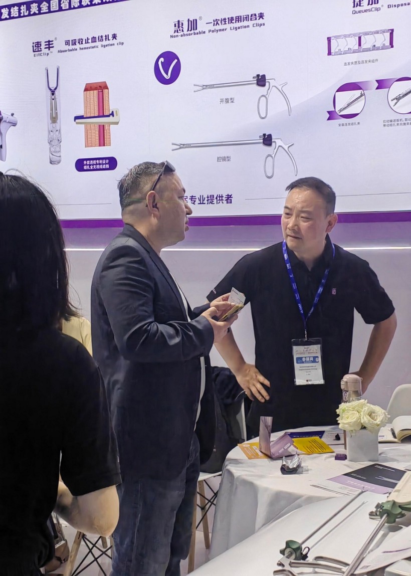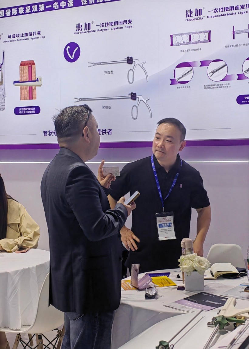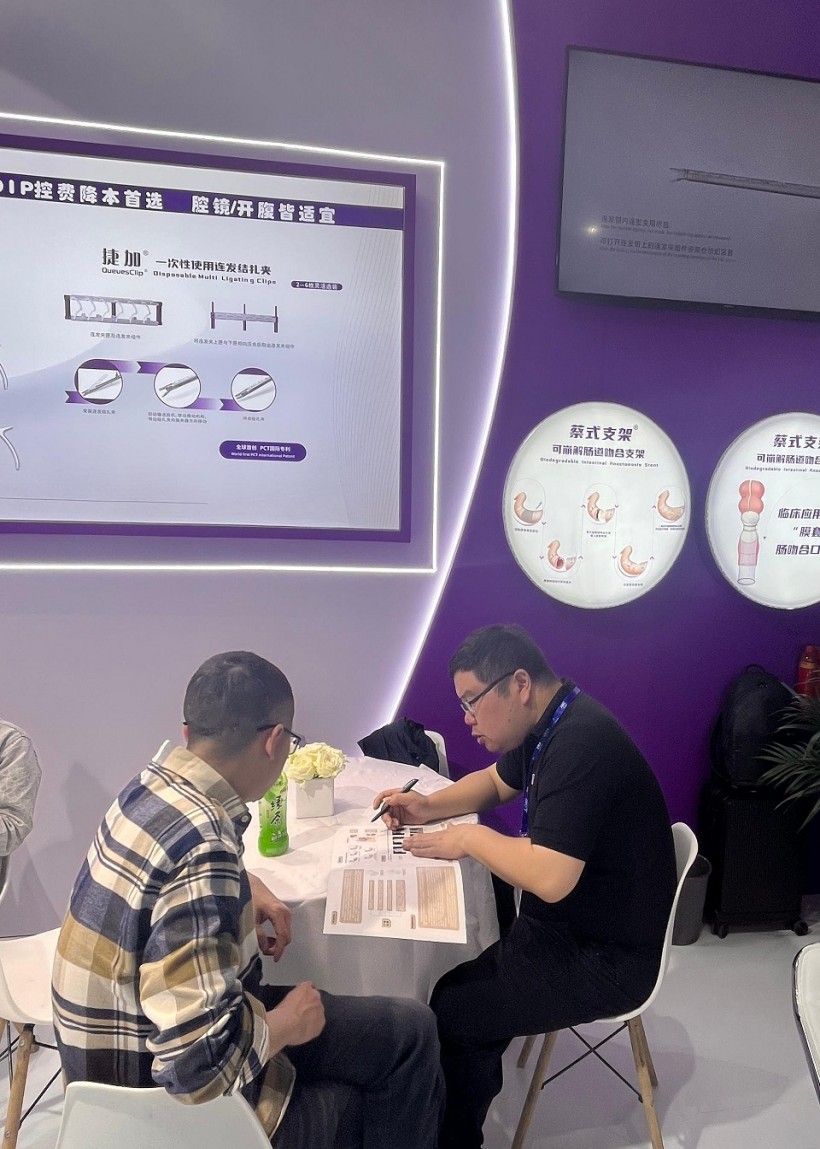 圣石同期展示的獨創(chuàng)產品又一次聚焦了眾人目光。全球首創(chuàng)捷加?一次性使用連發(fā)結扎夾及配套捷施?連發(fā)施夾鉗,其獨特的可重復使用連發(fā)鉗專利設計,以及“2-6枚的連發(fā)夾靈活選裝”專利技術不僅降低耗材使用成本,更通過流暢的操控性適配腔鏡復雜場景需求。圣石與浙大邵逸夫醫(yī)院聯(lián)合研制,可應用于腸道吻合與轉流的創(chuàng)新產品蔡式支架?“可崩解腸道吻合器”使此項全球創(chuàng)新術式配套產品具有吻合時間短、無永久殘留異物、不破壞吻合口粘膜下血管,并能預防吻合口漏、可避免人工肛門及二次手術、治療周期縮短、減少患者生理心理創(chuàng)傷等多項臨床優(yōu)勢。