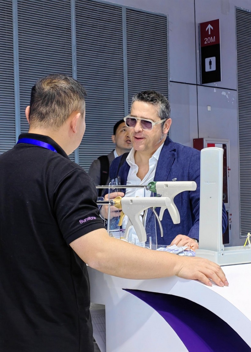 2025年4月8日,第91屆中國國際醫(yī)療器械(春季)博覽會(簡稱“CMEF”)在國家會展中心(上海)啟幕,圣石科技在創(chuàng)新醫(yī)療器械研制的銳意進取,成為展會的看點之一。作為管腔組織閉合及吻合方案的專業(yè)提供者,圣石展品吸引了大量國內外客戶的專程體驗,展臺前人流不息,洽談氣氛熱烈。